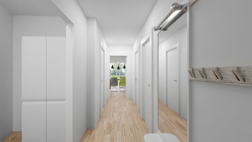 Die Ausstattung des Projekts ist auf modernes, komfortables und sicheres Wohnen ausgerichtet. Elektrische Fußbodenheizung, Smart-Home-System und elektrische Rollläden sorgen für zusätzlichen Komfort im Alltag. Ergänzt wird das Konzept durch eine energieeffiziente Bauweise, die Zukunftsfähigkeit und Wohnqualität miteinander verbindet. Barrierefreie Zugänge und ein Aufzug unterstützen zudem eine langfristige Nutzbarkeit und erleichtern den Alltag. Gleichzeitig bietet der Komplex ein Wohnumfeld, das auf Sicherheit und praktische Nutzbarkeit ausgelegt ist: Ein gesichertes Gelände, Zugangskontrolle sowie ein Parkplatz pro Einheit schaffen eine solide Grundlage für entspanntes Wohnen. Optional kann zusätzlich eine E-Ladestation vorgesehen werden.